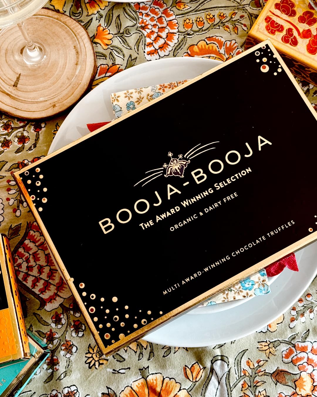 A selection of sixteen multi award-winning chocolate truffles created to bring smiles to chocolate lovers everywhere. A handful of simple, carefully chosen organic ingredients whisked and whirled to perfection. These exquisite little taste adventures have received 66 awards since 1999. Welcome to the wonderful world of Booja-Booja